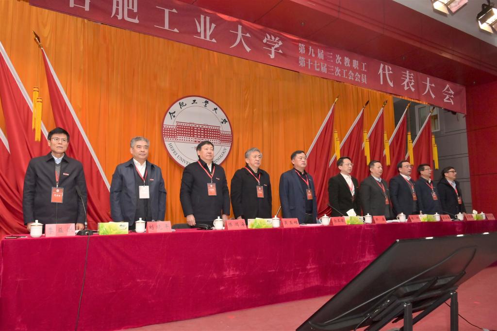 余其俊強調,教育是國之大計、黨之大計,黨的二十大對做好新時代新征程教育工作、加快推進教育高質量發展作出新的重大部署。全校師生員工要深刻領會以習近平同志為核心的黨中央作出這一戰略部署的深刻意義,充分認識把握賦予高等教育的新使命新任務,加快推進學校高質量內涵式發展,加快建設國際知名的研究型高水平大學和一批世界一流學科,為全面推進中華民族偉大復興貢獻工大力量,彰顯工大擔當。一是要深入學習貫徹習近平新時代中國特色社會主義思想和黨的二十大精神,堅持和加強黨對學校工作的全面領導,更加堅定自覺地用理論學習成果武裝頭腦、指導實踐、推動工作,堅定學校高質量內涵式發展的正確政治方向;二是要全面貫徹學校“十四五”事業發展規劃,團結帶領廣大教職員工堅定走中國特色研究型高水平大學的辦學之路,牢固樹立“我們擁有共同的事業”的信念信心,進一步激發干事創業的動力和活力,增強加快推進學校高質量內涵式發展的歷史主動;三是要進一步加強教代會、工會建設,始終堅持目標導向和問題導向相統一,充分發揮工會組織和各位代表在學校事業發展中的重要作用,匯聚加快推進學校高質量內涵式發展的磅礴力量,團結帶領全校師生員工更加緊密地團結在以習近平同志為核心的黨中央周圍,始終堅持為黨育人、為國育才,把建設國際知名的研究型高水平大學和一批世界一流學科的奮斗目標融入中國式現代化的時代洪流,在全面建設社會主義現代化國家的壯麗史詩中奮力續寫合肥工大新的輝煌。