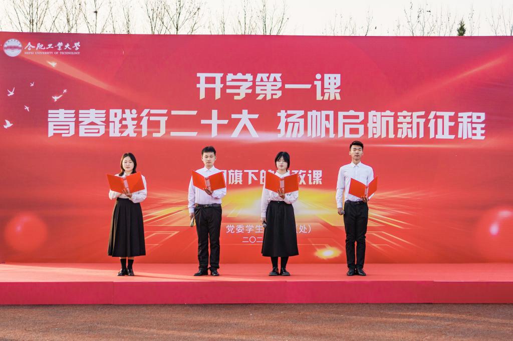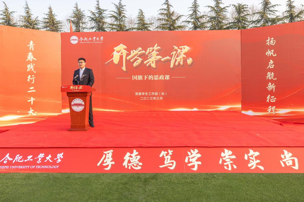 3月6日上午,春季學期“開學第一課”升旗儀式暨國旗下的思政課在我校屯溪路校區、翡翠湖校區同時舉行。校黨委書記余其俊為同學們講授國旗下的開學第一課。活動由校黨委副書記陳剛主持。