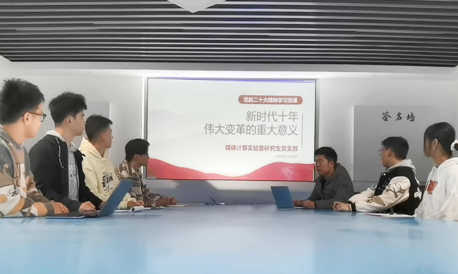 11月14日,計算機與信息學院媒體計算實驗室研究生黨支部在科教樓A座9樓中廳開展了“新時代十年的偉大變革”主題黨日活動,活動圍繞“新時代十年偉大變革的里程碑意義”,深入探討習近平新時代中國特色社會主義思想,回顧黨的光輝歷史和十年來我國經濟社會的發展變化。支部全體黨員參加學習。