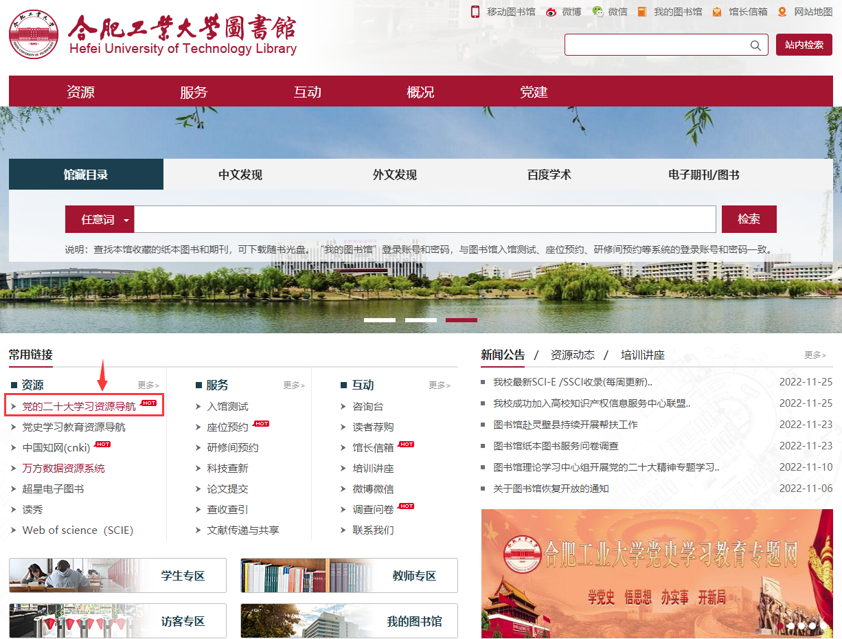 圖書館網(wǎng)站主頁設(shè)立“黨的二十大學(xué)習(xí)資源導(dǎo)航”